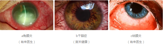 在临床应用ADC时,眼部不良反应是其特征性不良事件之一,有荟萃分析显示,ADC引起视力模糊的总体发生率可达40.5%,是主要剂量限制性的脱靶毒性之一[1]。虽然大多数眼部不良事件程度较轻且可逆,但因其对患者生活质量影响较为严重,是临床中需要特别关注的不良事件。在全球已上市的ADC药物中,已有Belantamab Mafodotin(BM,用于多发性骨髓瘤)、Tisotumab Vedotin(TV,用于宫颈癌)和Mirvetuximab Soravtansine(MS,用于卵巢癌)3款ADC因眼部突出的不良事件而被美国食品药品监督管理局(FDA)予以黑框警告[2]在HER2阴性乳腺癌中,已报道的数据显示,部分ADC导致的眼部不良事件不容小觑,常发生于≥2个治疗周期后,累及眼表,包括角膜炎(图1a)、干眼症(图1b)、结膜炎等(图1c)。患者最常见症状表现为视力模糊,其次为视力下降和复视[3]