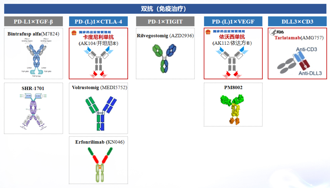 国的双抗研发走在世界前列,多项II/III期临床研究开展中。