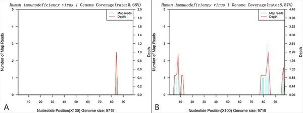 图3.检测到的DNA序列仅覆盖了HIV基因组的短片段
