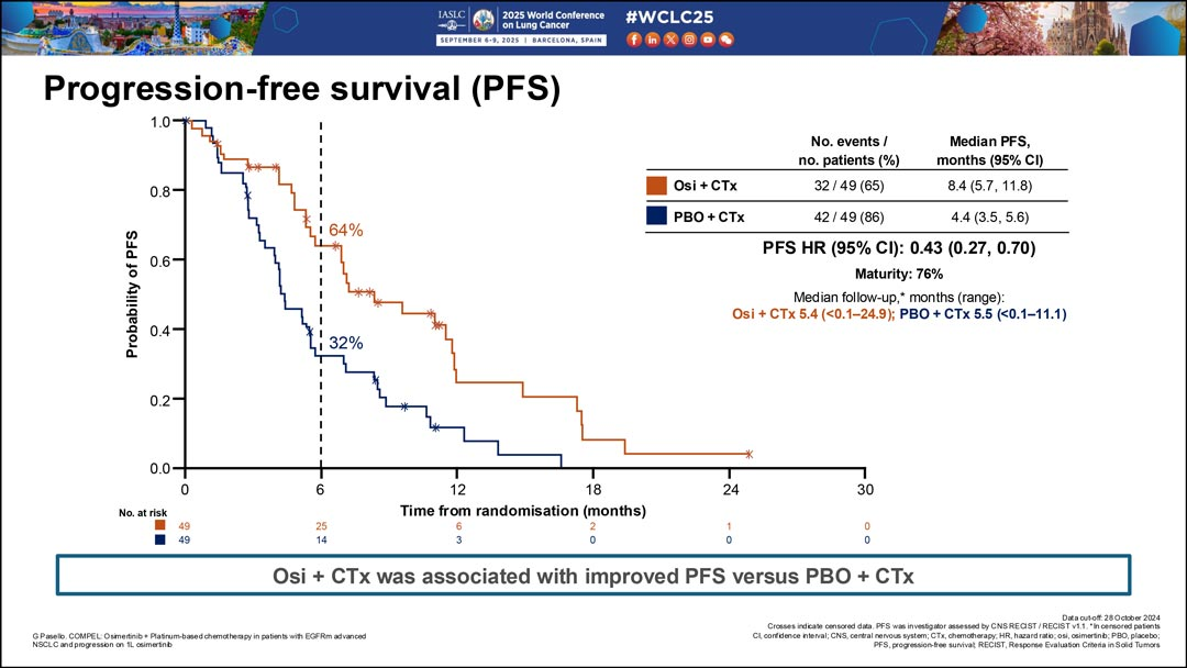 WCLC 2025丨COMPEL研究:奥希替尼联合化疗用于EGFR突变非小细胞肺癌进展后疗效优于单纯化疗