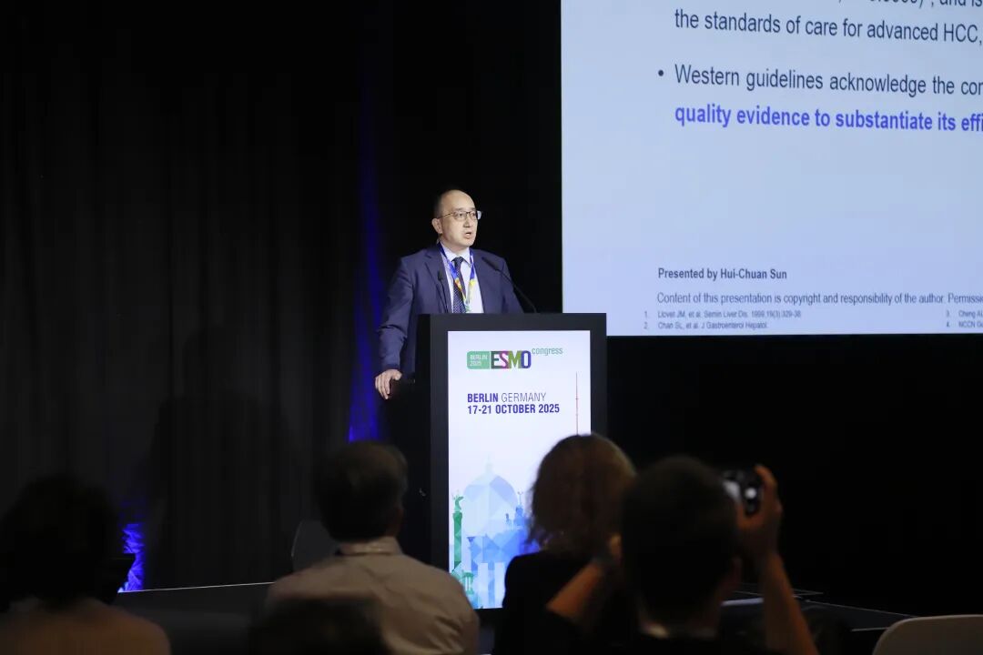 在此背景下,一项中国原创性临床研究——TALENTOP研究应运而生。该研究不仅致力于回答“手术能否为局部晚期HCC患者带来更优生存获益”的核心问题,更将为转化治疗这一前沿理念在晚期HCC中的应用奠定重要基础。2025年10月20日,在德国柏林隆重召开的欧洲肿瘤内科学会(ESMO)年会上,复旦大学附属中山医院孙惠川教授作为主要研究者,口头报告了TALENTOP研究的中期分析成果(大会编号:1469MO),吸引了全球肿瘤学界的广泛关注。该项研究是中国学者集体智慧的凝聚与绽放,为晚期HCC治疗策略带来了全新的思路与方向,有望在全球HCC治疗领域发挥重要的引领与推动作用。