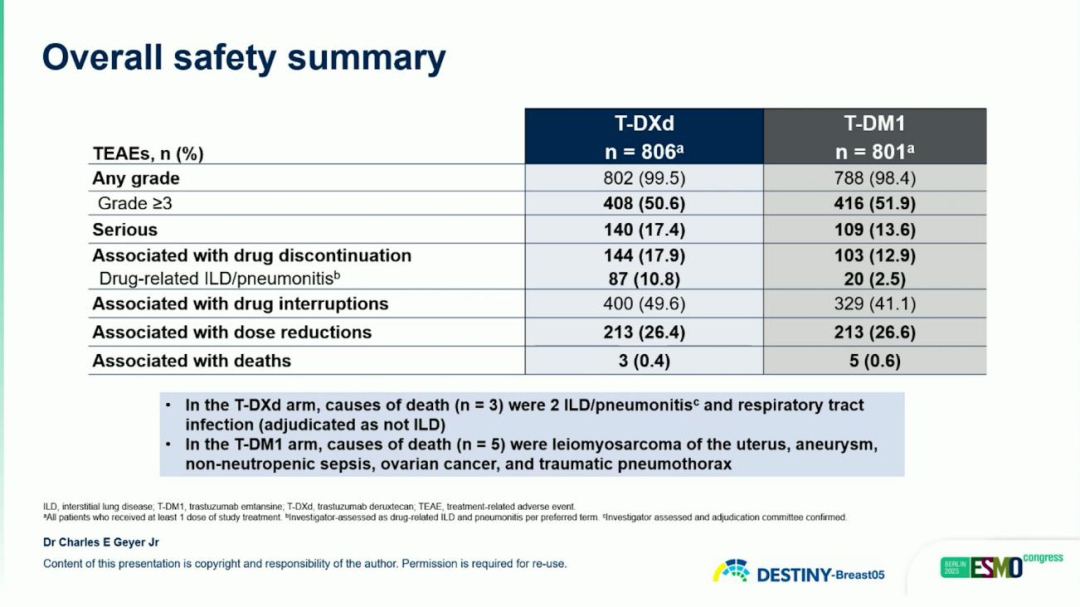 总而言之,DB-05研究达到了预期目标,不良反应谱也在预期范围内,为HER2阳性早期乳腺癌新辅助治疗non-pCR的患者提供了新的、更优的治疗选择。