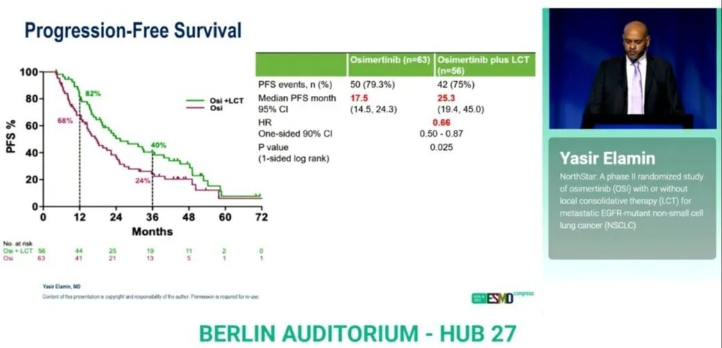 1.Yasir Y.Elamin,Saumil Gandhi,Mara Antonoff,et al.NorthStar:A phase II randomized study of osimertinib(OSI)with or without local consolidative therapy(LCT)for metastatic EGFR-mutant non-small cell lung cancer(NSCLC).2025 ESMO.Abstract LBA72