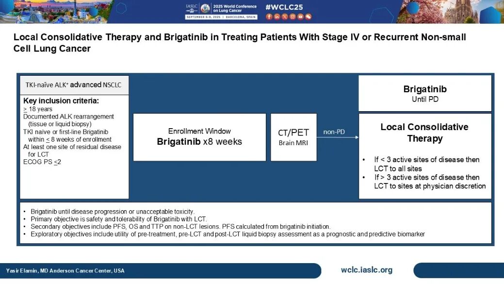 2.Elamin Y,et al.BrightStar:LCT With Brigatinib in Tyrosine Kinase Inhibitor-Naive ALK-Rearranged Metastatic NSCLC.2025 WCLC OA07.01.