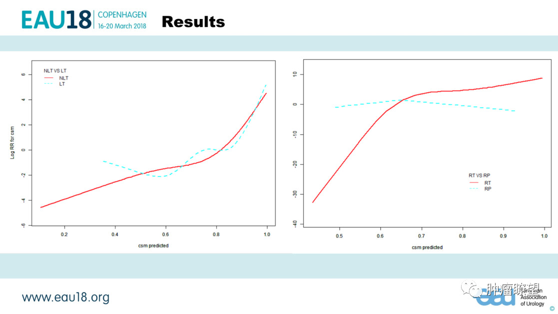 来自意大利米兰的Marco Bandini在本次EAU中展示的回顾性队列研究中,选取了2004年-2014年的拟行前列腺癌根治术且盆腔淋巴结清扫阳性的3761名患者,冰冻切片显示盆腔淋巴结有转移而放弃根治术的患者从2004的占比由2004年20.2%下降至2014年的5.6%,竞争风险存活分析显示,区域淋巴结转移性前列腺癌患者放弃根治术组10年肿瘤特异性死亡率显著高于完成根治术组,提示前列腺癌根治术带给区域淋巴结转移性前列腺癌患者的生存获益。