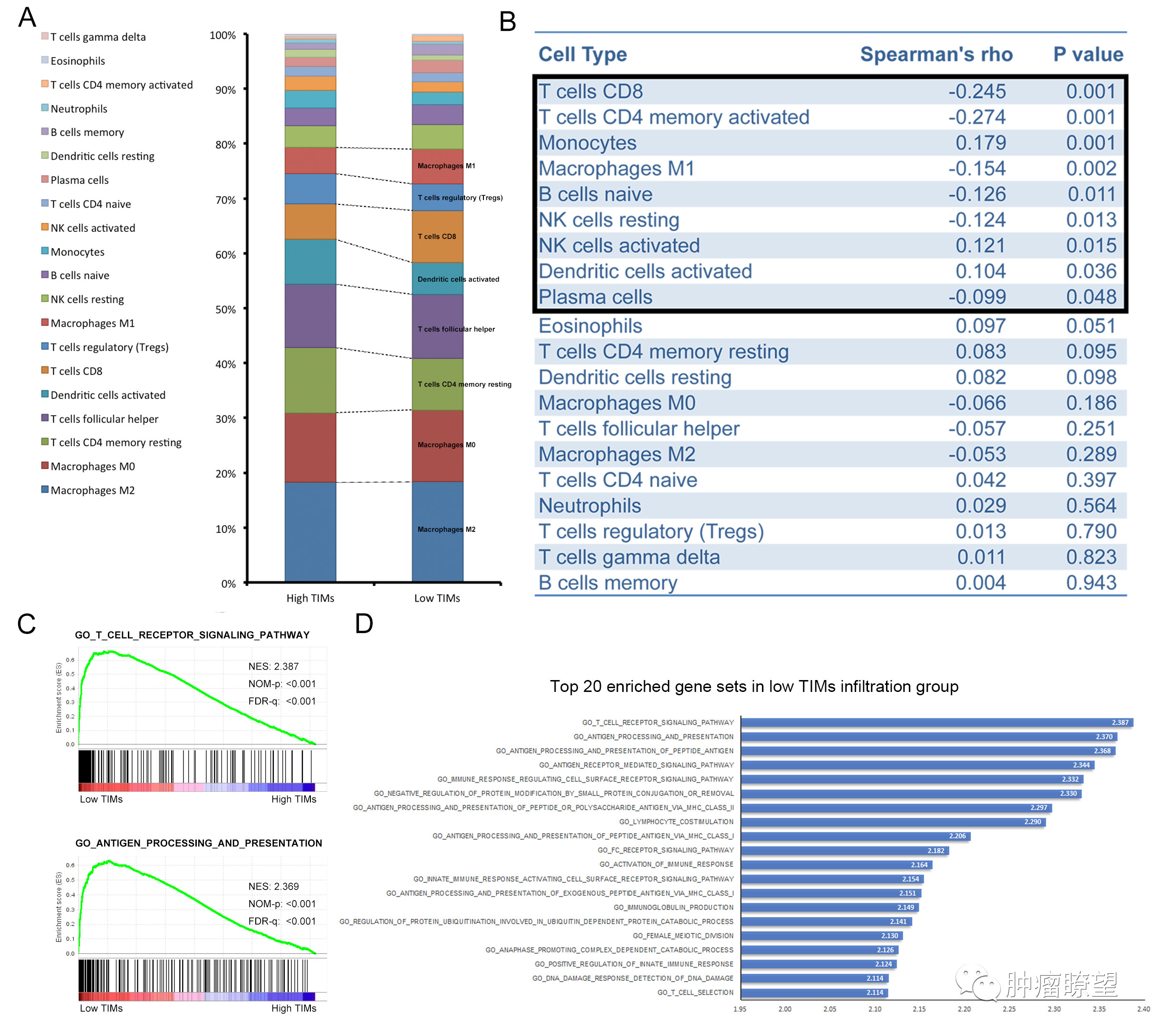进一步分析发现,低浸润的肥大细胞与肿瘤免疫激活密切相关,尤其与发挥抗肿瘤的主要效应性免疫细胞杀伤性T细胞的数量增多有关。浸润的肥大细胞数量减少也可激活免疫杀伤性分子相关的调控通路,从而增强抗肿瘤免疫。