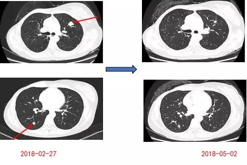 仔细阅片可以发现,该例患者首次复发时双肺多发转移,但在随后的在化疗中,胸部CT随访显示有的转移灶缩小,有的也出现了增大。这说明乳腺癌肺内不同部位的转移瘤存在治疗反应的差异,单个转移瘤活检,有可能不能反映所有转移瘤的生物学特性。所以,建议在治疗过程中,根据影像随访结果,在不同时间点,对治疗反应不佳的转移灶进行再次活检,有可能发现新的治疗靶点,为病人争取治疗的机会。