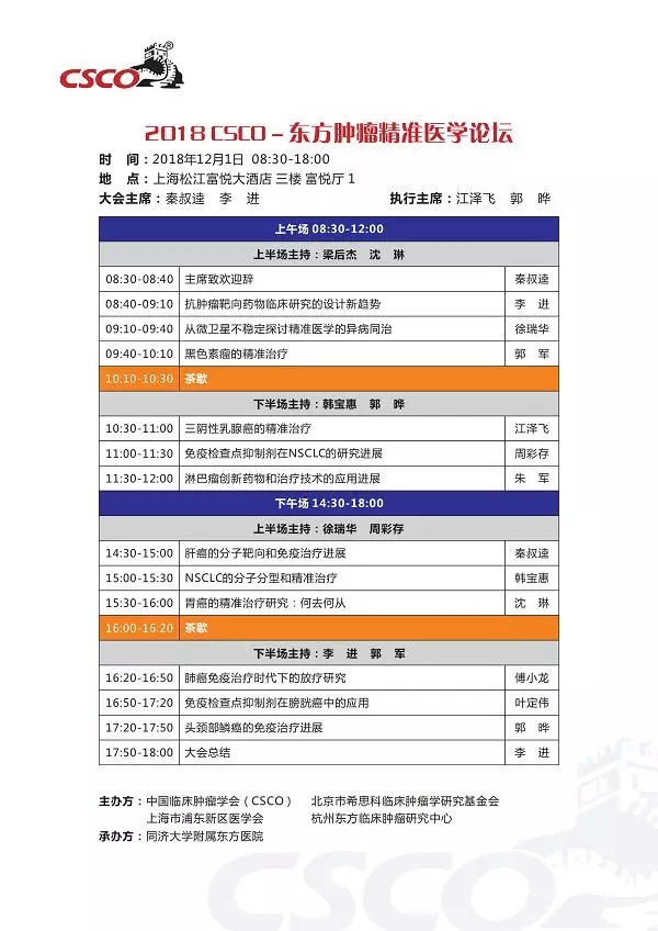 编者按:2018 CSCO东方肿瘤精准医学论坛暨抗肿瘤药物安全管理专家委员会年会将于2018年11月30日至12月1日在上海召开