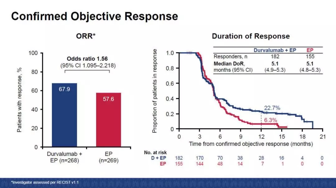 durvalumab联合组的ORR为67.9%,单纯化疗组的ORR为57.6%,OR=1.56 (95% CI: 1.095–2.218),客观缓解率提高了10.3%。
