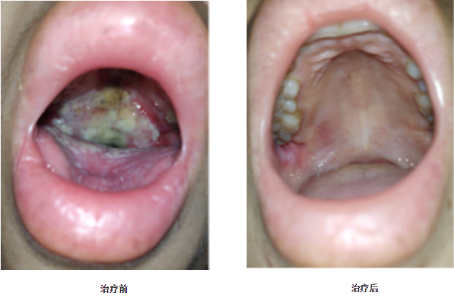 10.18第四次活检 软腭肿物病理:多量坏死物,炎性渗出物及少许鳞状上皮黏膜呈重度慢性炎,上皮可见少许异型淋巴样细胞。