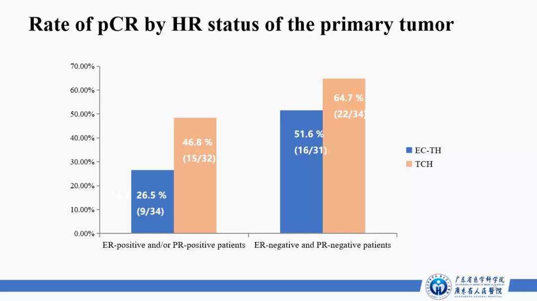这是第一项前瞻性随机对照Ⅱ期研究,头对头对比6TCH与4EC-4TH作为HER2阳性乳腺癌新辅助临床研究,研究发现两组的不良反应发生率没有统计学差异,但是6TCH组有更高的pCR率,这个研究结果有可能改变目前HER2阳性早期乳腺癌的新辅助治疗策略。