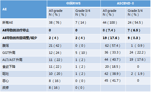 尽管ASCEND-1研究体现了塞瑞替尼的卓越疗效,但是750mg空腹服用所带来的胃肠道不良反应(AE)依旧是一个挑战。