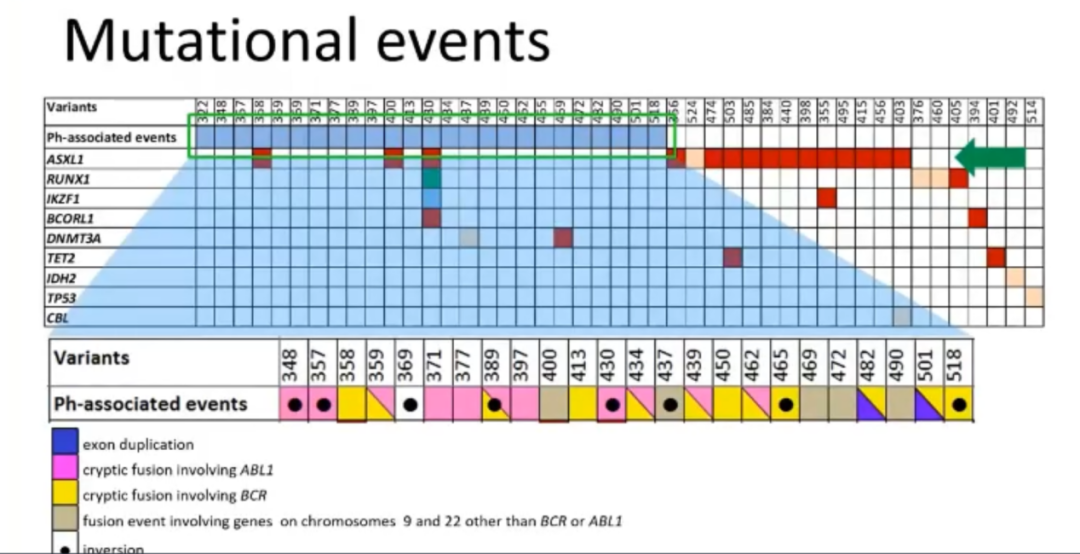 Ph相关事件被定义为Ph易位染色体的片段化、反转和不完全序列重组,与肿瘤相关基因一起合称为基因组学事件。既往研究显示,基因组学事件在治疗效果不佳的CML患者中发生率较高。