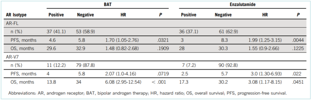 表1. AR-FL、AR-V7表达对PFS和OS的影响