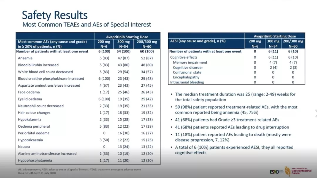 结论:在中国患者中,阿伐替尼200 mg和300 mg每日一次的耐受性普遍良好。300 mg QD为中国患者的RP2D。本研究数据显示,阿伐替尼在PDGFRA D842V突变患者和4L+ GIST患者中显示出强大的抗肿瘤活性,使其成为该人群重要的潜在新治疗选择。