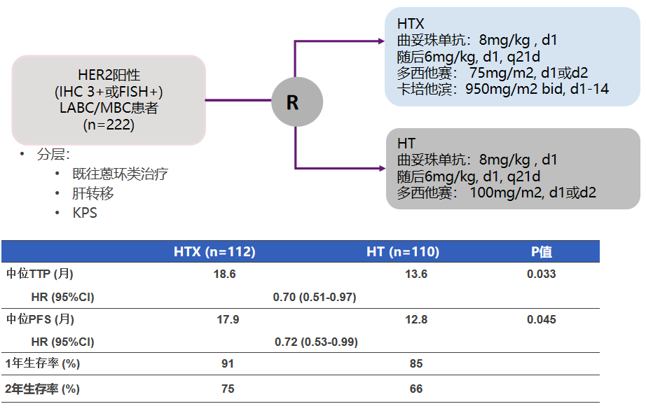 在帕妥珠单抗不可及的情况下,我们也可以选择化疗+曲妥珠单抗方案进行替代治疗。CHAT研究结果提示:HTX较HT方案能显著延长TTP/PFS,但应注意对其不良反应进行管控。