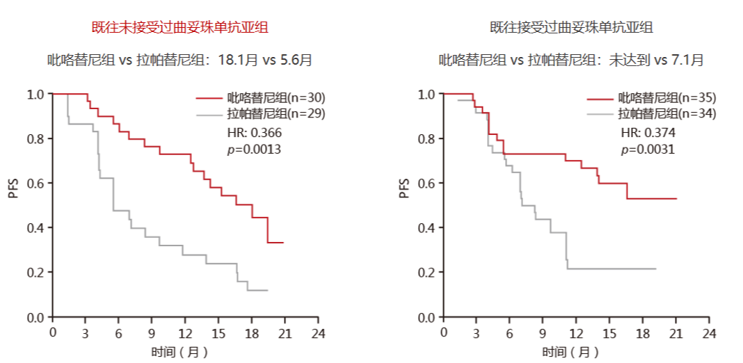 小分子TKI类药物的在晚期一线治疗中的效果也不容小觑,吡咯替尼II期研究提示,吡咯替尼+卡培他滨对比拉帕替尼+卡培他滨也显著延长患者的PFS(18.1个月 vs 5.6个月)。因此,一线治疗也可选用吡咯替尼+卡培他滨。