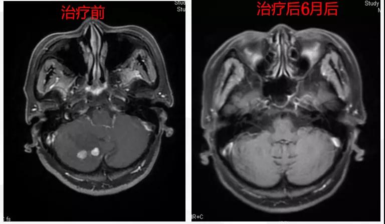 给予T-DM1治疗。治疗6个月后复查MR显示脑、肝、骨转移瘤均较前明显缩小,达到部分缓解(PR)(图2)。目前PFS已达10+个月。
