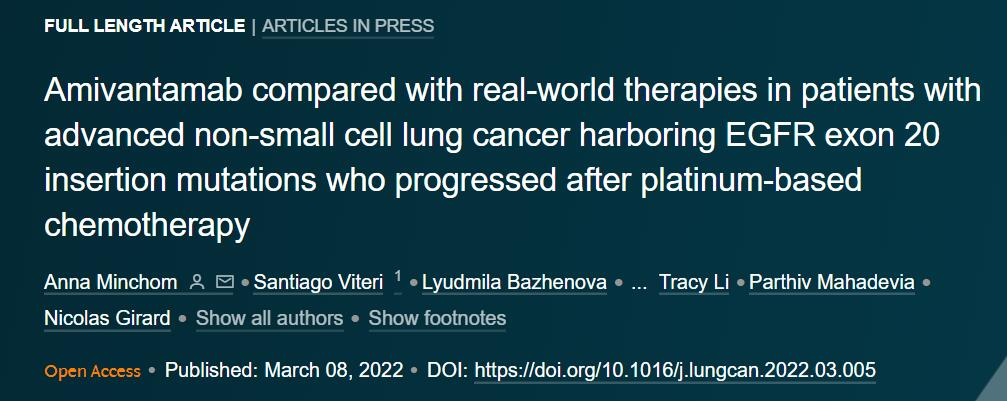 在单臂CHRYSALIS研究中,JNJ-372治疗携带EGFR第 20外显子插入突变且既往接受过铂类药物治疗的晚期NSCLC患者显示了持久的客观缓解及可管理的安全性。近期,Lung Cancer杂志将该药物与真实世界中的标准治疗数据进行比较,以提供外部对照。