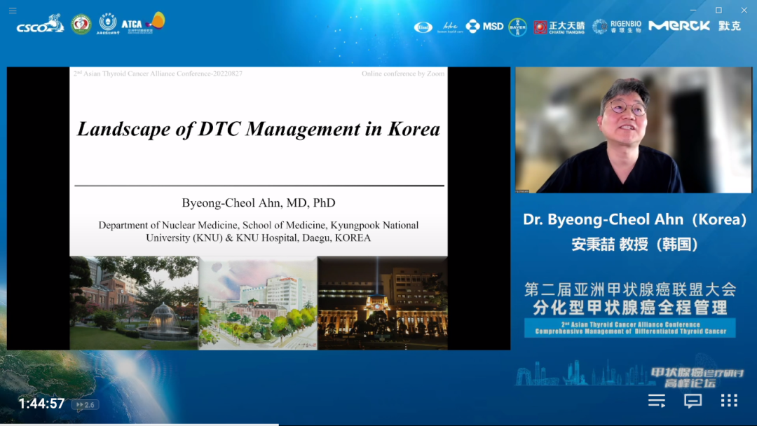 编者按:甲状腺癌是全球高发癌种之一,近年呈上升趋势,其中90%为分化型甲状腺癌(DTC),一旦进展,10年生存率仅为10%,寻求DTC全程管理策略,是维护人类命运共同体健康发展的重要保障。2021年8月28日,由中国临床肿瘤学会(CSCO)甲状腺癌专家委员会、中国临床肿瘤学会核医学专家委员会携手国内外专家共同构建亚洲医疗共同体,成立亚洲甲状腺癌联盟(ATCA,Asian Thyroid Cancer Alliance)。2022年8月27日,ATCA成立周年之际,在CSCO、ATCA的号召下,中、日、韩、印、新加坡等多国学者共同剖析DTC管理现状,纵览亚洲,剖析热点,谋定共识!