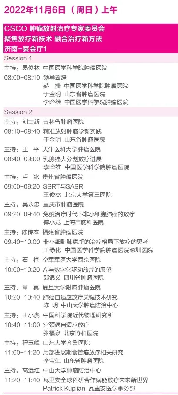 济南会场将于11月6日在济南市富力凯悦酒店举行,共设置了两个专场,分别聚焦肿瘤放疗技术和免疫治疗。期待各位同道积极参与这一学术平台,在分享中成长,在交流中收获。