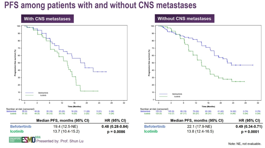 数据发现,两组中位PFS分别为22.1个月和13.8个月,HR=0.49,P<0.0001,亚组分析发现不同临床病理特点的患者均可以从贝福替尼的治疗中获益。