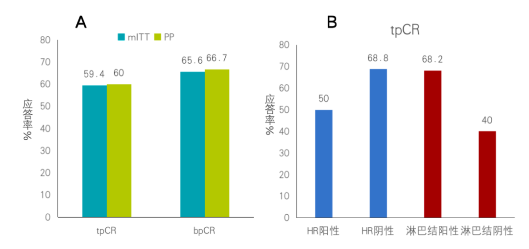 图1.术后tpCR和bpCR(A);不同亚型tpCR率(B)