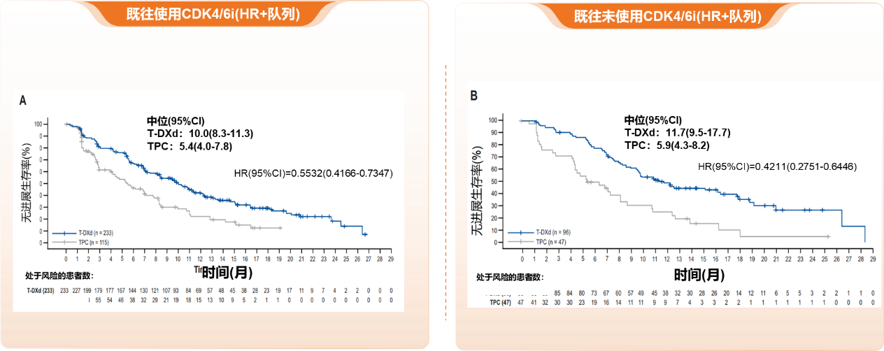 在HR+患者中,既往使用和未使用CDK4/6i的患者T-DXd组PFS均优于TPC组[29]。