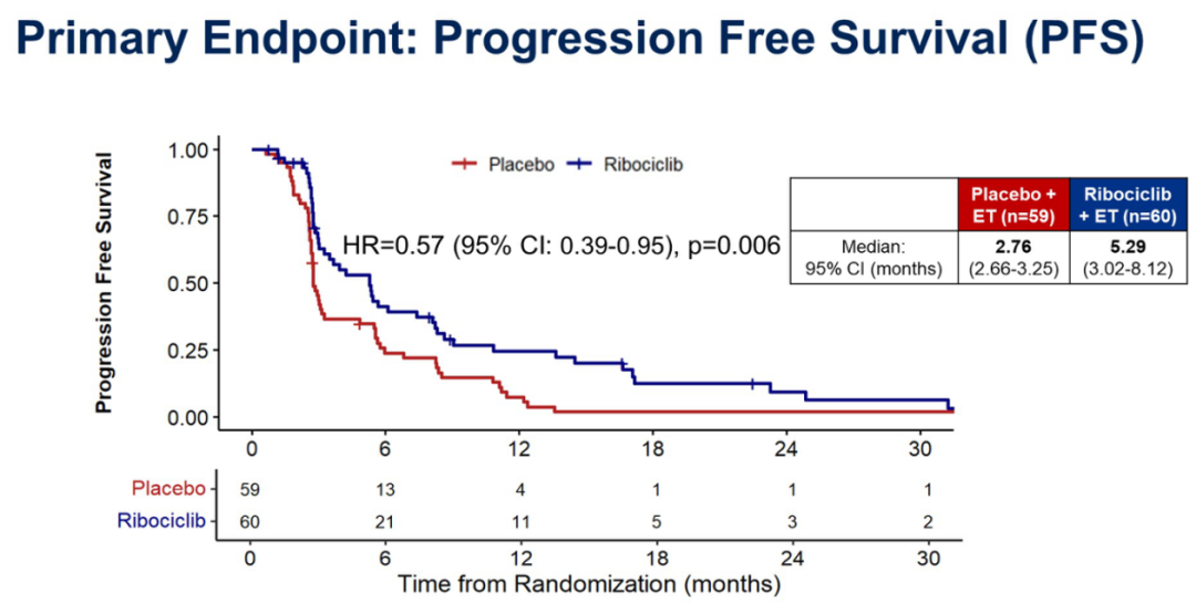ACE研究一项多中心、随机、双盲Ⅲ期临床试验,共入组365名既往内分泌(辅助或解救)治疗复发/转移的HR+/HER2-晚期乳腺癌患者,随机分配至HDAC抑制剂西达本胺联合依西美坦组和安慰剂联合依西美坦组。结果显示,西达本胺组患者的中位PFS为7.4个月,安慰剂组为3.8个月,具有统计学差异。西达本胺联合依西美坦组的ORR和CBR分别为18.4%和46.7%,优于对照组的9.1%和35.5%,差异均具有统计学意义。