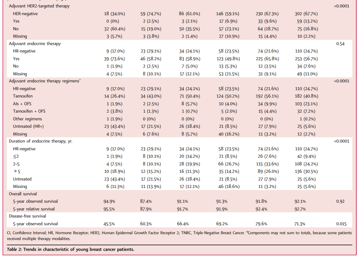 Wang X,Xia C,Wang Y,Qi Y,Qi X,Zhao J,Ye S,Lei Z,Yue J,Huang H,Liu N,Chen W,Yuan P.Landscape of young breast cancer under 35 years in China over the past decades:a multicentre retrospective cohort study(YBCC-Catts study).EClinicalMedicine.2023 Sep 22;64:102243.doi:10.1016/j.eclinm.2023.102243.PMID:37936654;PMCID:PMC10626170.