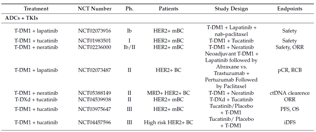 表1.正在进行的TKI+ADC临床研究[17]